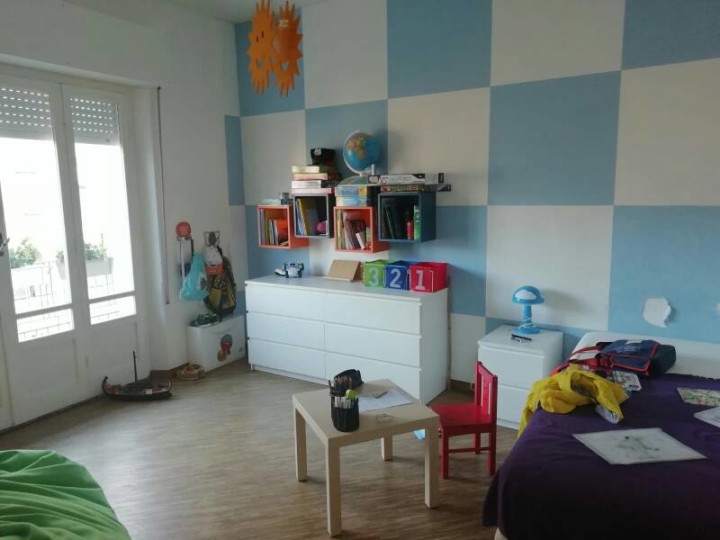 Salone, cucina abitabile, tre camere, due bagni, ripostiglio, due balconi, di cui uno verandato.